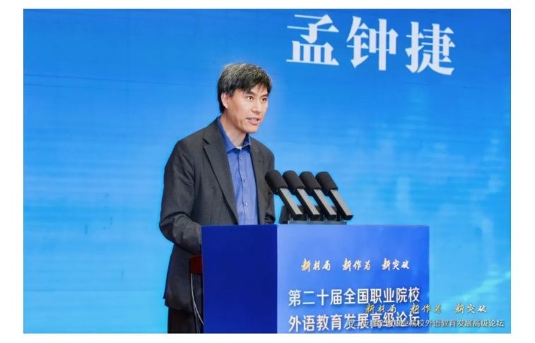 在主旨报告环节,孟钟捷教授作了题为“对接产业,融通技术:职教英语教育的价值再定位”的报告,提出我国职业院校英语教育转型路径、未来人才的战略构想。北京联合大学常红梅教授的线上报告“职业外语教育发展新路径:融合、赋能、引领”重点指出外语职业教育对接产业需求、推动职教出海、推进教学创新的实践路径。同济大学吴赟教授则在报告中提出外语教育探索守正创新一体两翼的发展路径和具体改革路径,南京大学陈新仁教授提出构建高职外语育人新范式,让高职外语成为职教出海的桥梁。